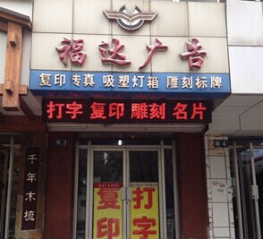 张家口市宣化盛景装饰工程有限公司(福达广告)从事广告制作行业17年,具有广泛的经营领域,对员工以人为本,关爱关怀,提倡认真工作,快乐生活,主要经营门头牌匾、室内宣传牌、条幅、打字、复印、传真等等。