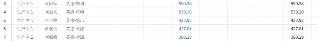 这个表格就说明这个工序,这几个人在这半个月,他拿了多少提成,就很充分的体现出来。而且他要跟我对账,我也很简单,直接查单核对,是你接的单、是你喷漆的是吧,这个单子分配比例是什么样的大家都清楚,拿笔秆子一算他都知道,也没有什么扯皮的。